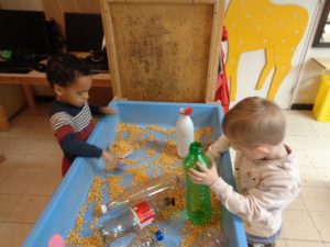 Onze klas heeft geëxperimenteerd met verschillende instrumenten. Wij hebben ook onze eigen instrumenten gemaakt: petflessen met maïs.